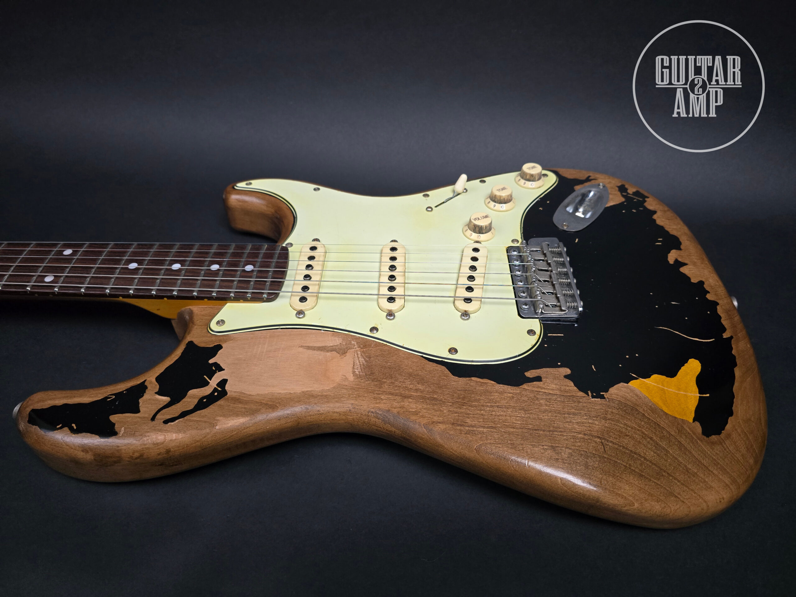 Dieses Exemplar verfügt über ein besonders markantes Very Heavy Relic Finish, inspiriert von der berühmten John Mayer “Black1” Stratocaster. Das Finish vermittelt das Gefühl eines Instruments, das über Jahrzehnte intensiv gespielt wurde und eine einzigartige Bühnenästhetik besitzt.